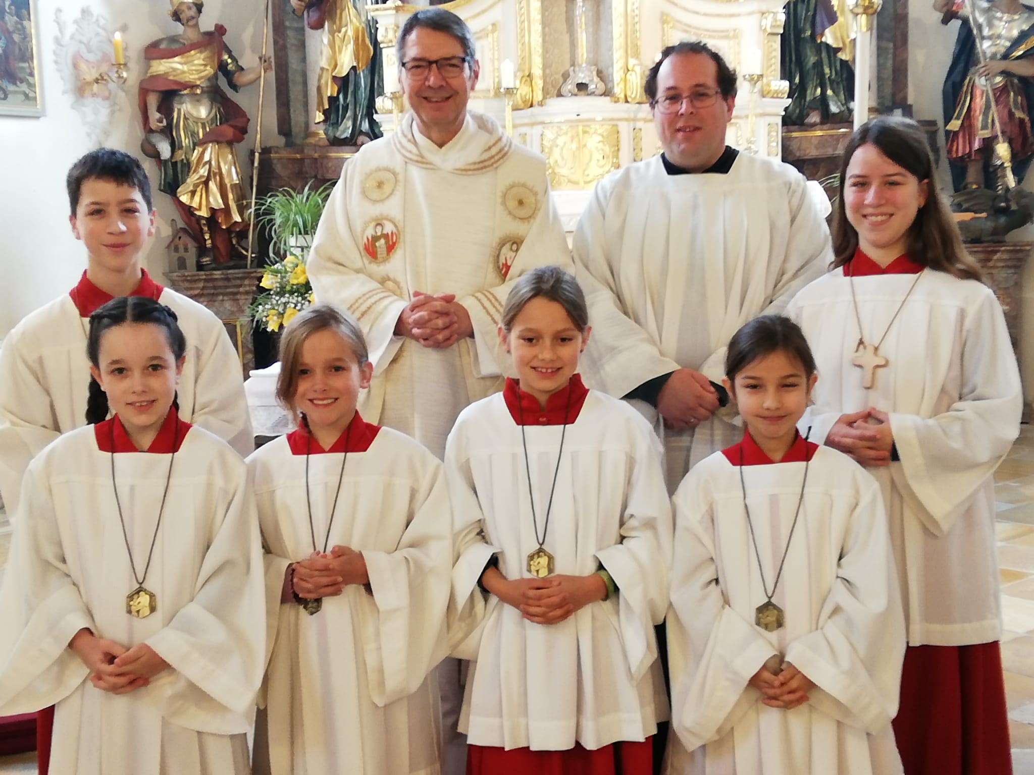 Unser Bild zeigt die vier neuen Ministrantinnen aus St. Laurentius zusammen mit Pfr. Dieter Zinecker, Pastoralreferent Stefan Knott, Florian Nißl und Oberministrantin Johanna Nißl,