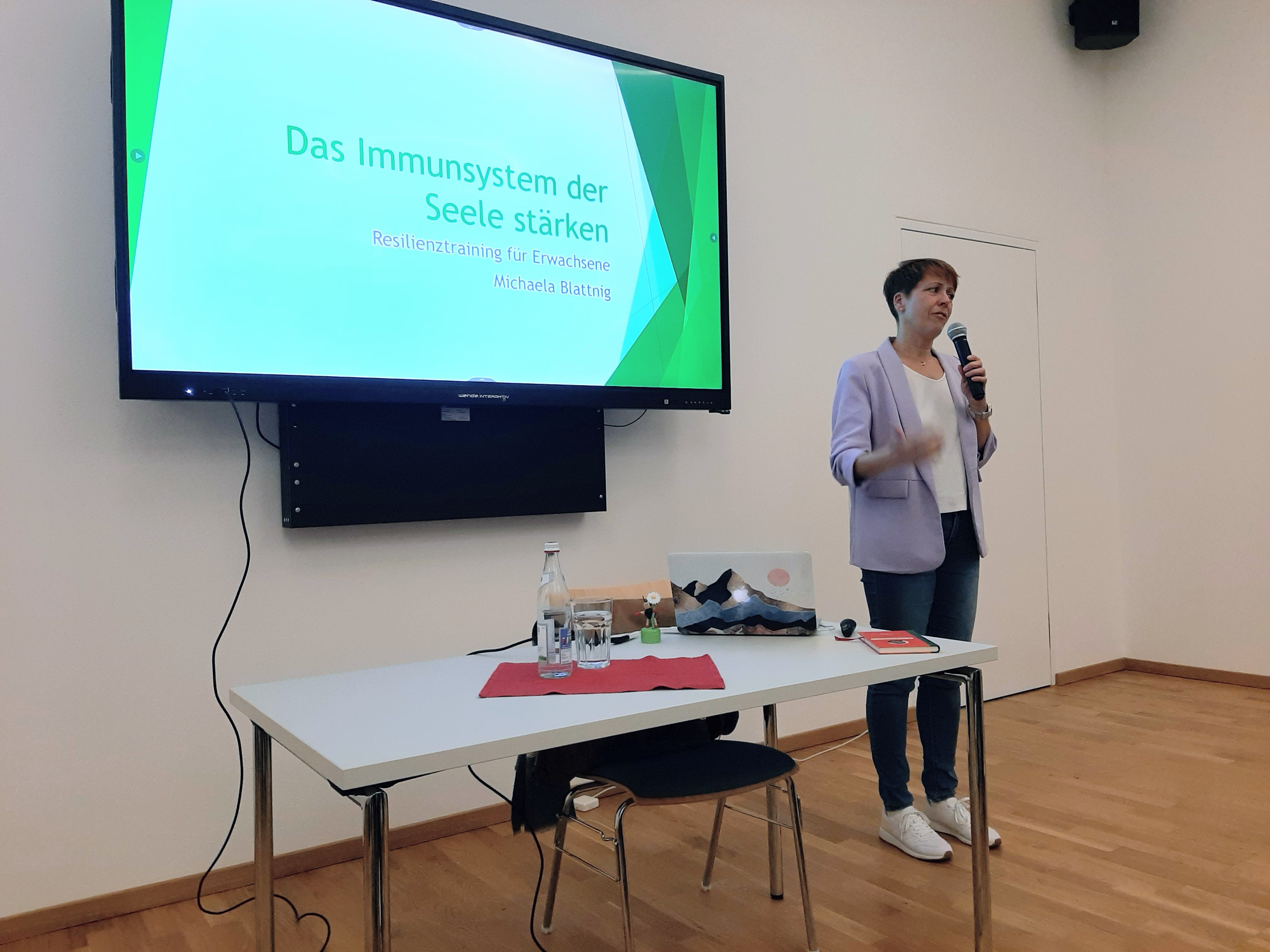 „Das Immunsystem der Seele stärken – Resilienz“ lautete die Überschrift über dem Vortrag der Sozialpädagogin und Resilienztrainerin Michaela Blattnig letzte Woche im Pfarrheim in Feldkirchen, zu dem Pfarrgemeinderat und KEB-Straubing-Bogen eingeladen hatten. Und sehr viele Zuhörer hat dieses Thema wohl angesprochen, wie der sehr gut gefüllte Pfarrsaal zeigte. Mit ihrer positiven und erfrischenden Ausstrahlung erreichte die Referentin sofort die Aufmerksamkeit der Anwesenden und führte mit einem kurzweiligen und praxisnahen Vortrag durch das Thema. Mit vielen lebendigen Beispielen erklärte sie die sieben Säulen der Resilienz und ermunterte die Zuhörer zu praktischen „Hausaufgaben“ für die nächsten Tage. Auch bei der Beschreibung der verschieden inneren Anteile – vom Antreiber über den Kritiker bis zum Kathastrophisierer, den zaghaften Vermeider oder dem Harmoniesüchtigen - fühlte sich so mancher an eigene Persönlichkeitsanteile erinnert. Resilienz stehe für eine umfassende Selbsterkenntnis und Selbstannahme. Wichtig sei auch eigenverantwortliches Handeln zu üben, indem man bewusste Entscheidungen trifft. Wichtig sei es vom „ich muss“ zum „ich darf“ zu kommen. Am Ende des Vortrags bedankte sich Rosemarie Murr-Anzenberger im Namen des Pfarrgemeinderats und der Zuhörenden für den informativen und anregenden Vortrag bei der Referentin und war sich sicher, dass jeder der Anwesenden hier etwas mit nach Hause nehmen konnte.